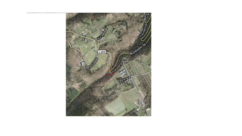 Dabei fiel mir ein Stollen ? ein der sich wenn ich die L209 hochfahre in der Ecke Abfahrt Kreuzberg befindet. Mein Opa meinte das wäre ein alter Bergbaustollen der sich kilometerweit durch die umliegenden Berge zieht, abgebaut hätte man damals wohl Schiefer.