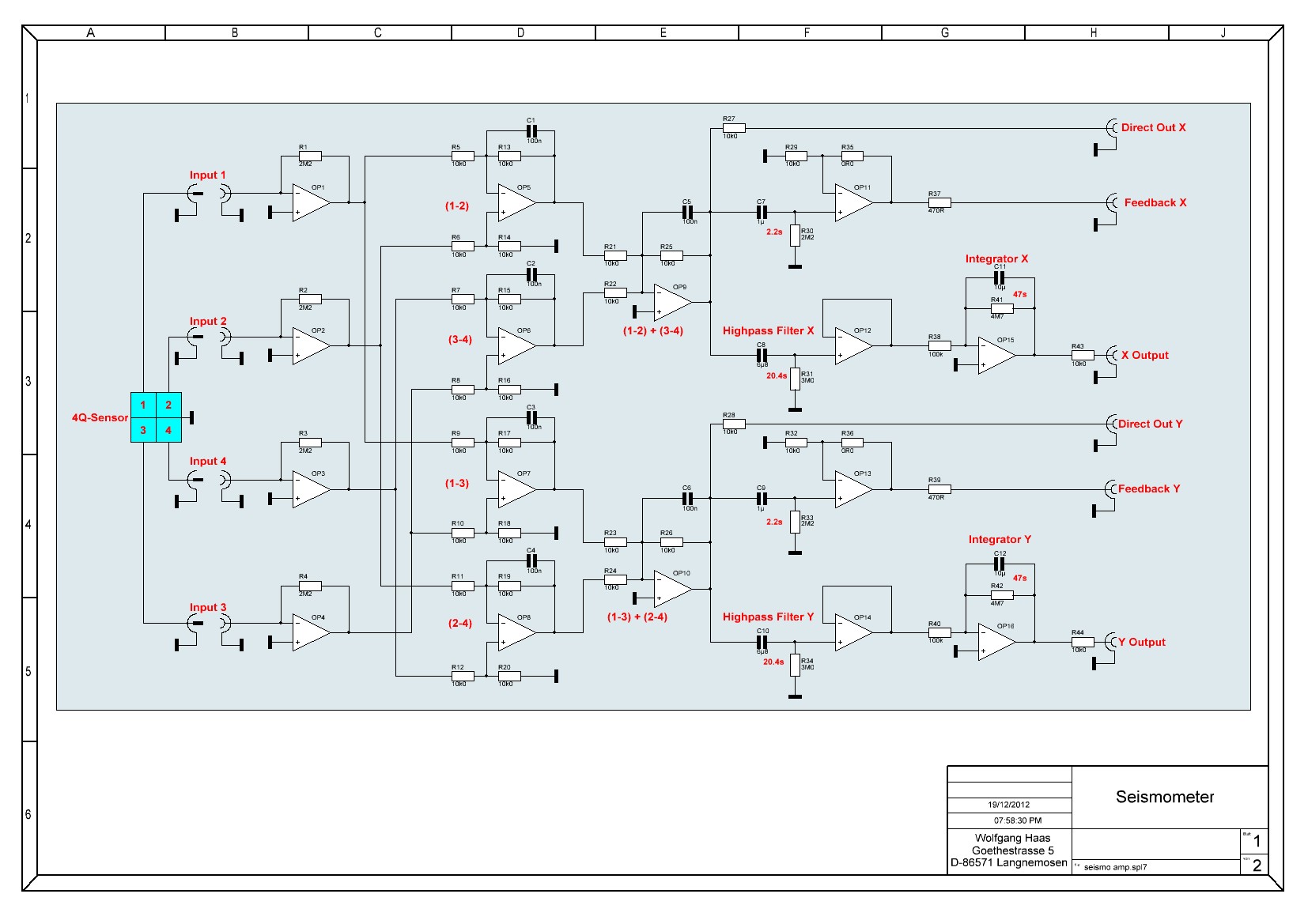 Das stärkste je von mir gemessene Beben fand am 7. Dezember 2012 in Japan statt und hatte die Magnitude 7,3. Am High-Gain Kanal (Nr. 2)des FBV war Clipping eingetreten, der Low-Gain Ausgang (Nr. 3) zeigte immer noch eine Amplitude von plus/minus 2,6 Volt. Hier zeigt sich, wie sinnvoll die Erweiterung der Schaltung in Version 2.0 ist. Ein Lob den Konstrukteuren!