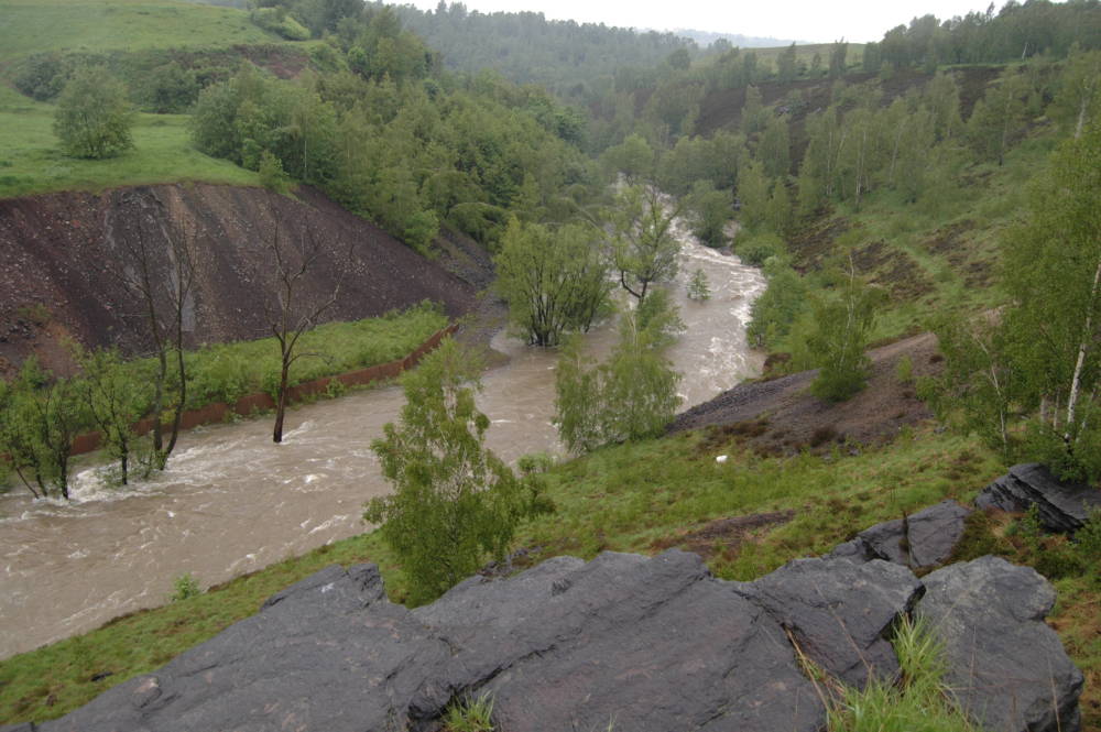 Bloß beim Teich oberhalb der Kaue hat es sehr viel Material weggespült.
