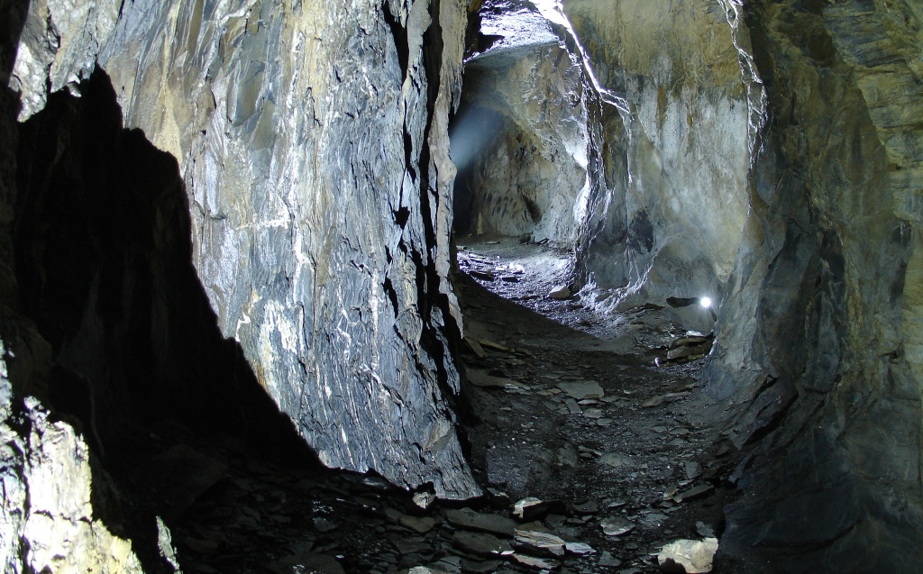 - Strecke mit Stahlsegmentausbau und Fahrtenschacht in einem ehemaligen Eisenerzbergwerk