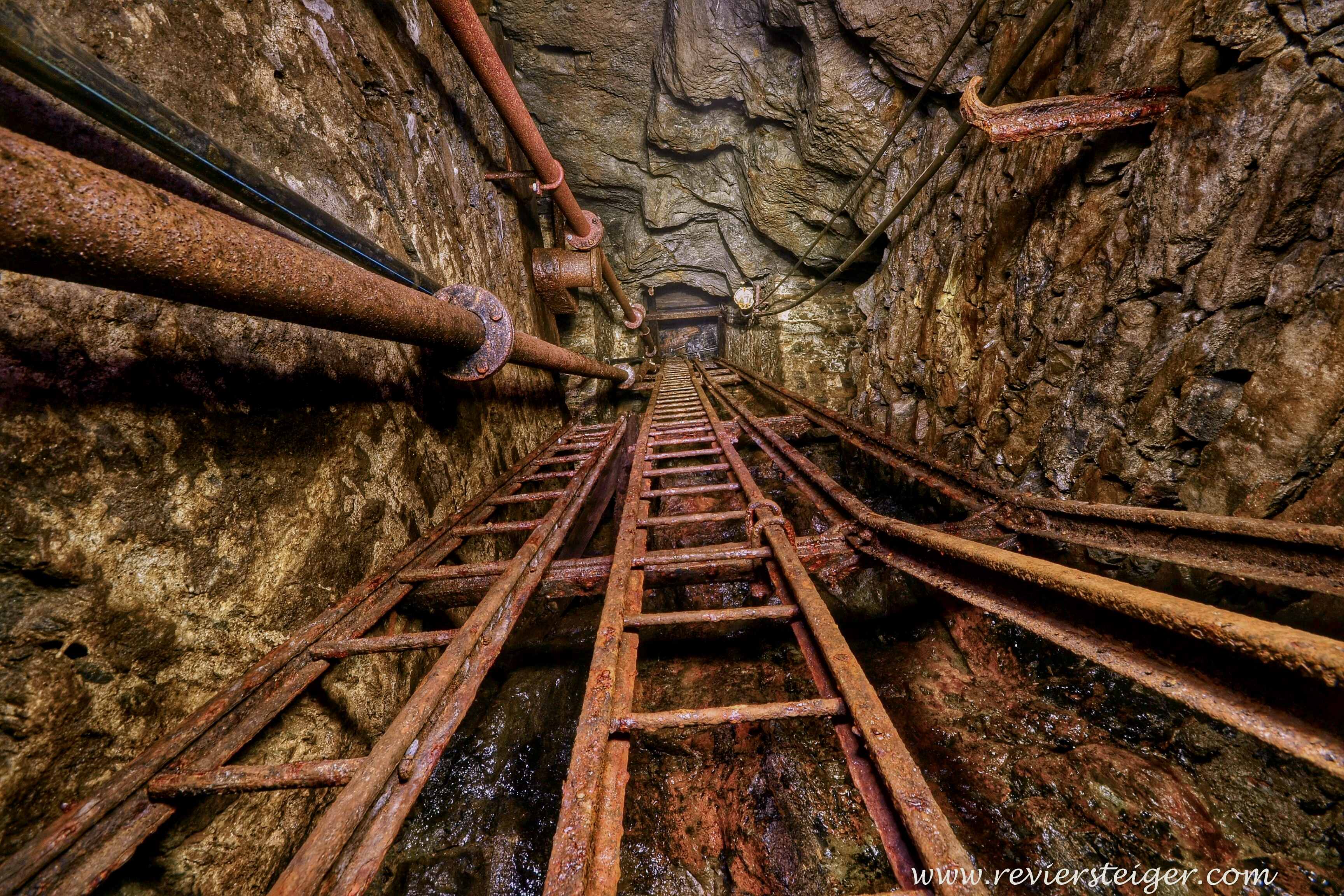 man beachte das weglassen der umstiegsbühnen in diesem ca. 100 meter tiefen schacht. respekt vor dem bergmann der damals auf der holzfahrte diese fahrung machen musste!!!