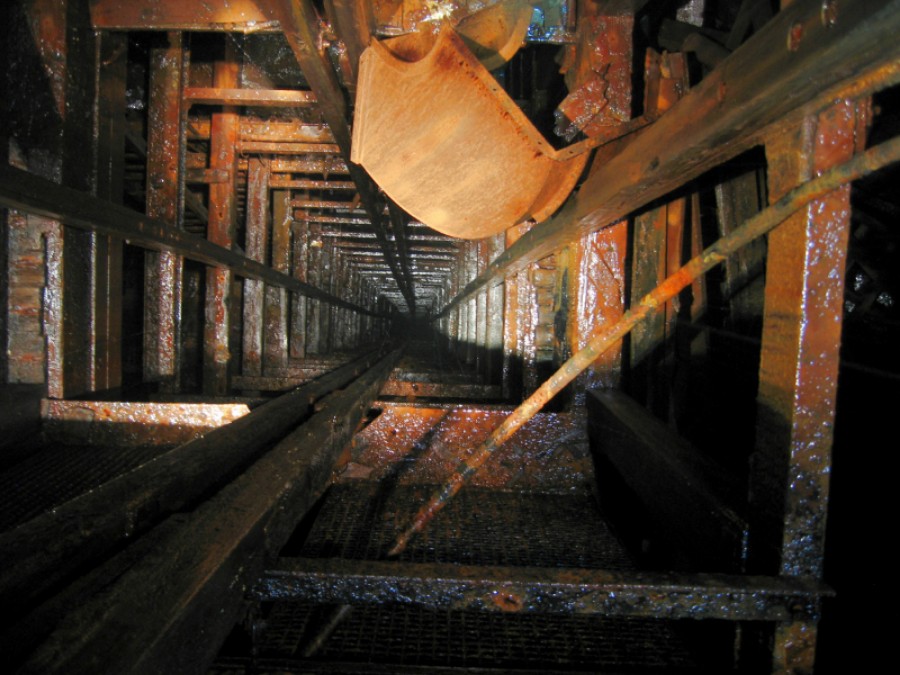 Blick in die Teufe vom Constantinschacht (Alte Mordgrube bzw. Mittelgrube / Brand-Erbisdorf) im Füllortbereich "Oberwerk" (etwas über dem Niveau vom Moritz Stolln)