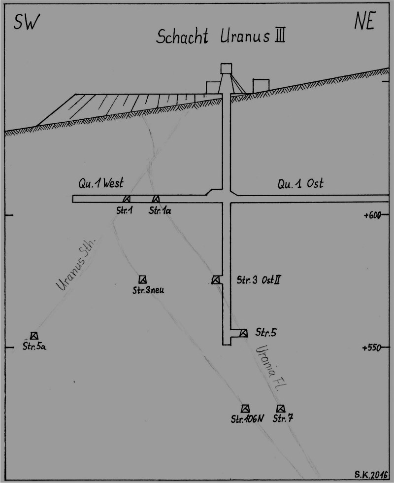 Aus dieser Sicht macht der Schacht schon Sinn. Das bei diesem Niveau der Urandrops schon gelutscht war, wusste man eben erst später. Vom Querschlag zweigen nur meterweise Erkundungsstrecken ab.