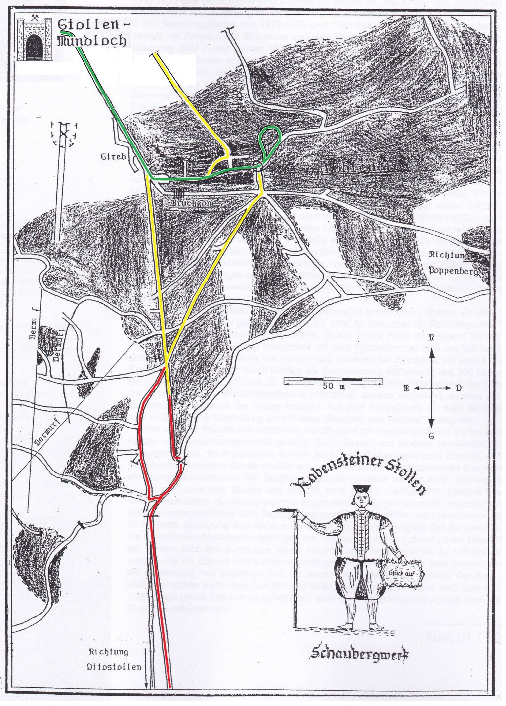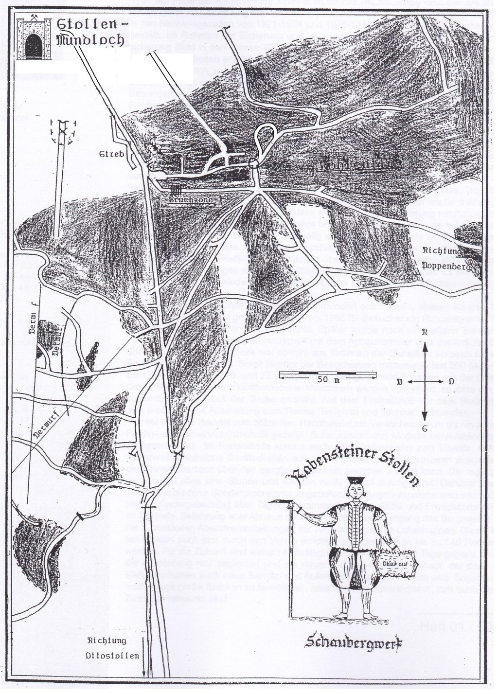 Bemerkung der Ottostollen, welcher sein Mundloch in unmittelbarer Nähe des Ilfelder Waldbades hat entwässert unser Bergwerk auch heute noch, jedoch kann man weder aus dieser noch aus unserer Richtung die beiden Bereiche befahren, da ein Damm mit Verohrung gesetzt wurde und das Wasser auf unserer Seite bis fasst unter die Firste angestaut ist im Winter bis zu dem Punkt den wir im Sommer bei der Altbergbauführung befahren können.