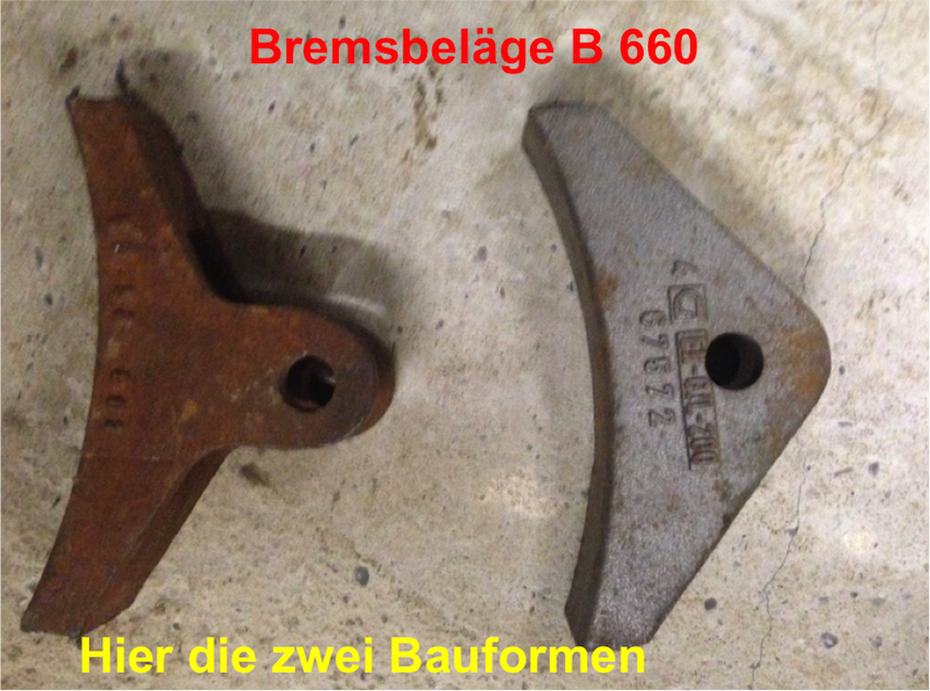 Die Lok B660 wurde mit unterschiedlichen Bremsgestängen und Belägen ausgeliefert. Wir haben zwei B660 bei uns. Beide Loks haben die anderen Beläge wie die oben gezeigten verbaut