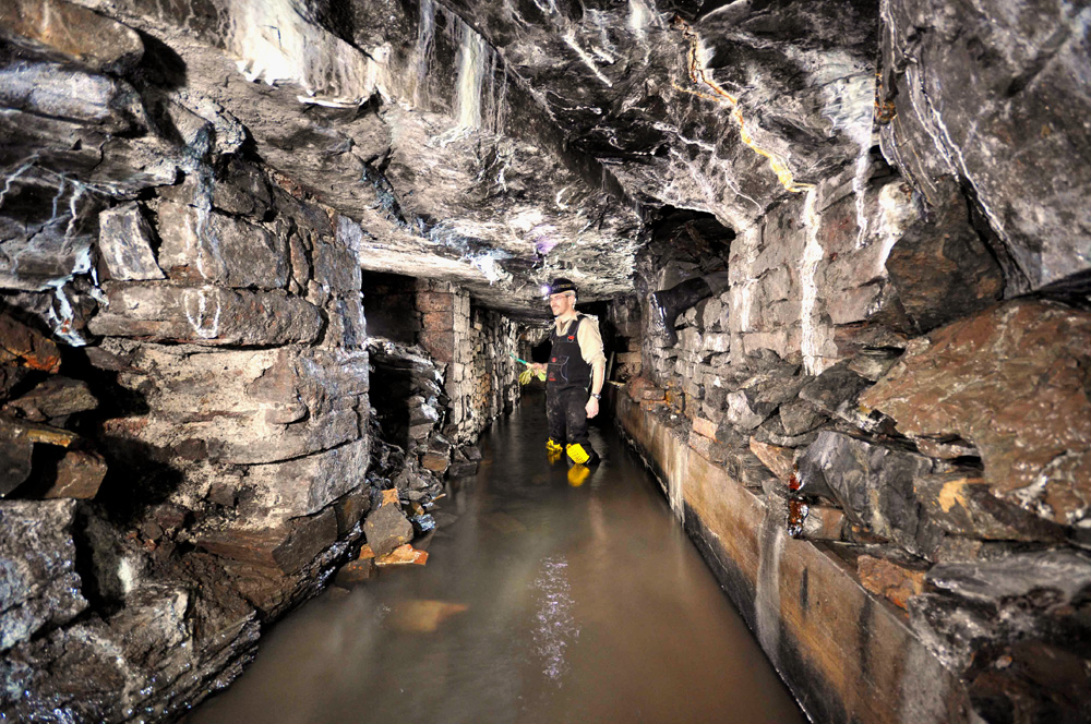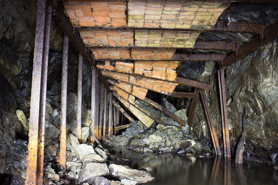 Großzügig aufgefahrener Förderstollen aus einer Eisenerzlagerstätte.