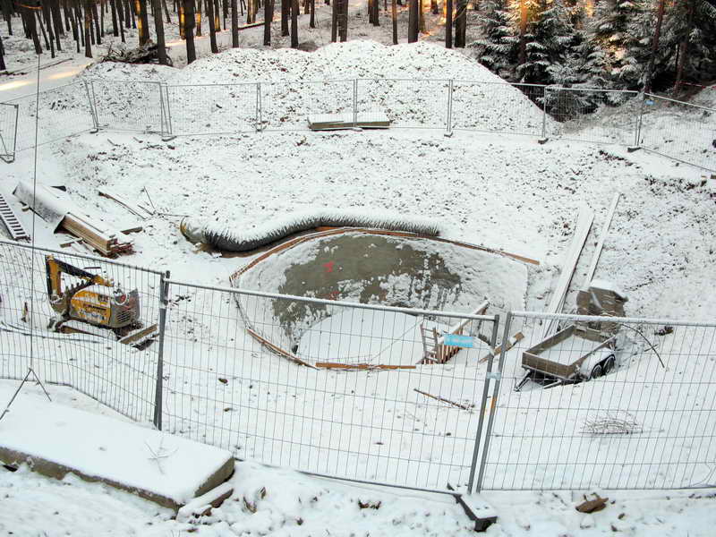 Die Baustelle in Frohnau am Parkplatz = Silbermühlenstollen