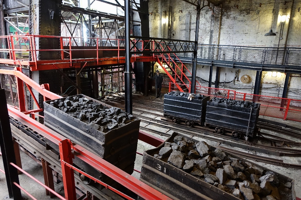 Die Rasenhängebank der "Lady Victoria Colliery" in Newtongrange... nun "National Mining Museum Scotland". Links befindet sich der Schacht.