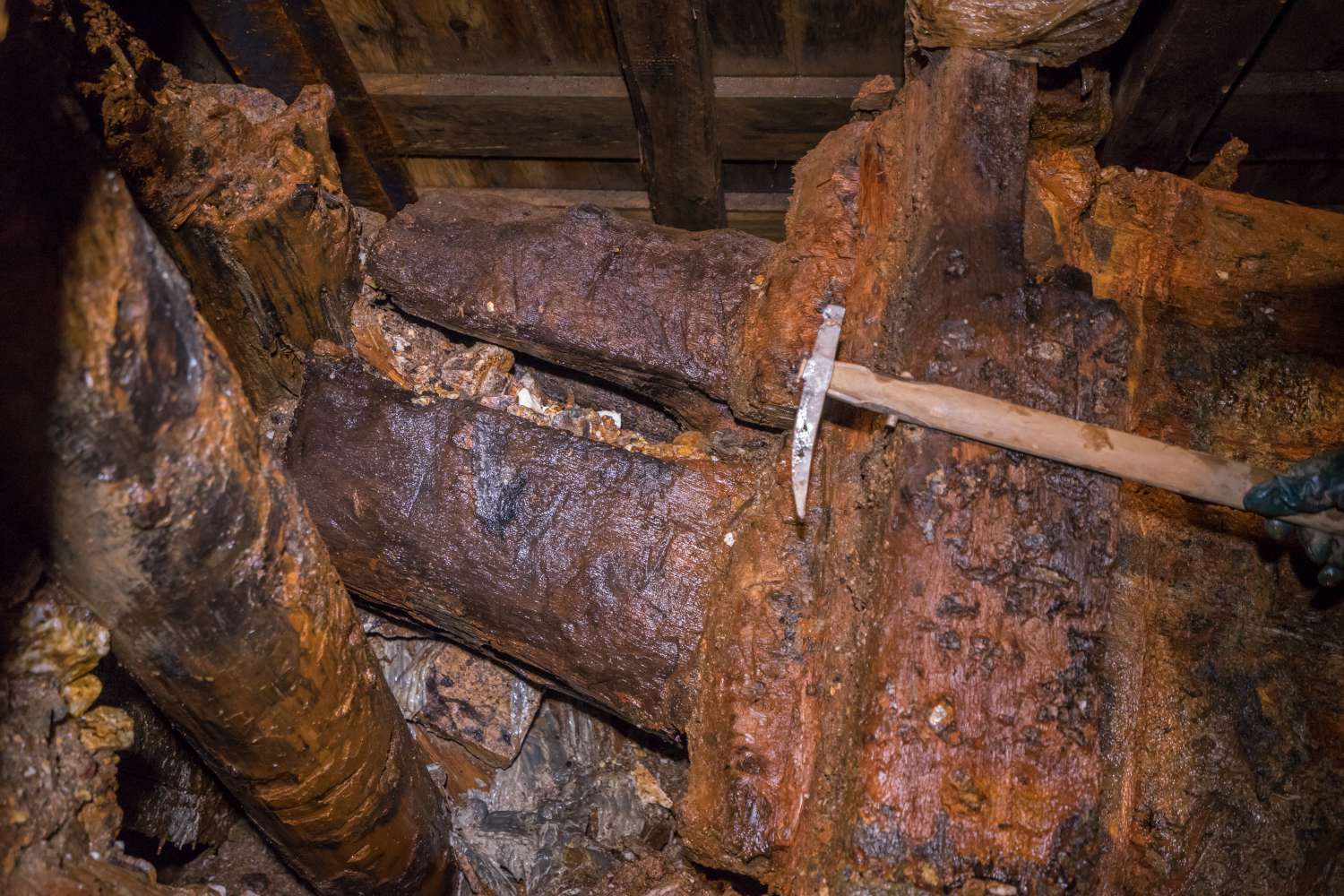 Bei der Erkundung eines Tagesbruchs im Kurbad Schlema sind Bergleute auf ein riesiges, gut 500 Jahre altes Wasserrad gestoßen. Archäologen sprechen von einem wahren Schatz.