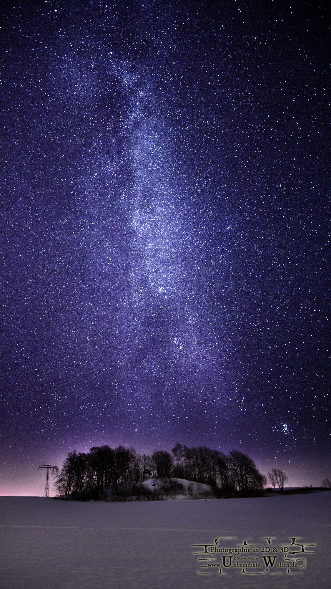 Gestern Nacht bei -10 Grad aufgenommen. Im Hintergrund ist die Milchstraße zu sehen. Wenn man genau hinschaut erkennt man den Andromeda-Nebel. Das Leuchten im Hintergrund der Halde entsteht durch die Lichtverschmutzung der Stadt Marienberg.