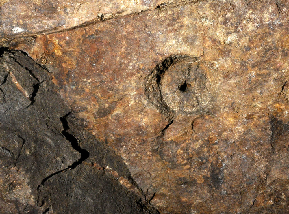 Bei einer Befahrung im oberen Erzgebirge haben wir vor einiger Zeit ein offenes Gesenk entdeckt, über dem ein uns bis dahin unbekannter Haspeltyp gestanden haben muss. Auf den ersten Blick sah alles aus wie sonst: Links eine Hornstatt, dann in die Sohle eingehauen die Bühnenlöcher für die beiden Pfuhlbäume. Am rechten Stoß neben dem Gesenk befand sich aber zu unserer großen Überraschung eine eingeschlägelte und kreisrunde Aufnahme für die Haspelwelle. Diese war sehr exakt ausgehauen und hatte im Mittelpunkt sogar noch eine Vertiefung für die Aufnahme eines Zapfens.