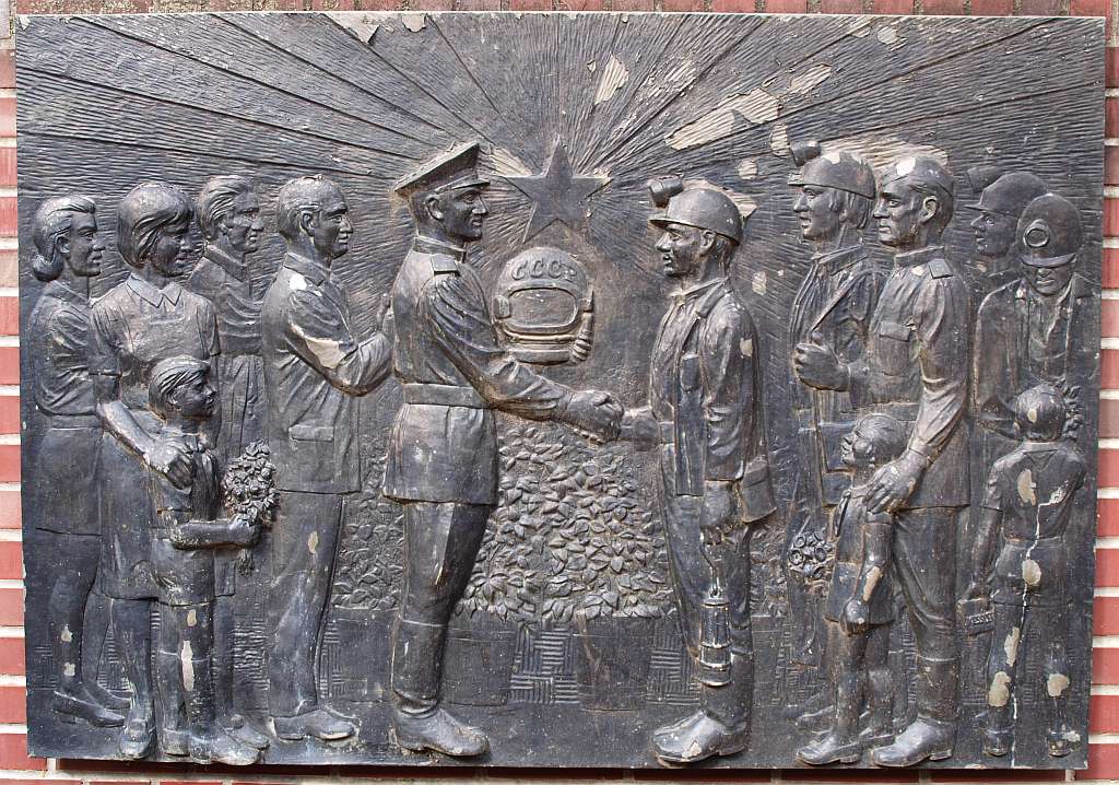 Linkes (1.) Relief: Bergmann und Kosmonaut ("für den Sozialismus")