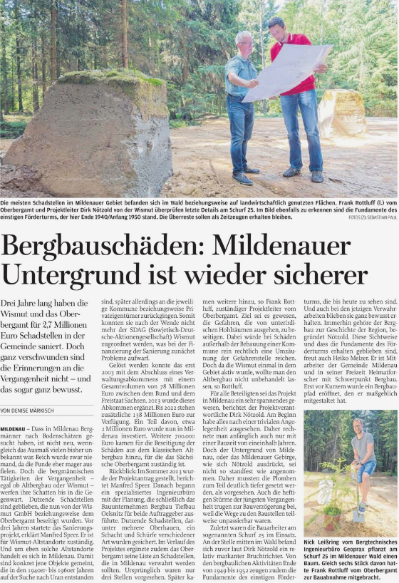 Die Verwahrung der 21 Wismut-Schadstellen (1 Schacht, 17 Schürfe, 3 Überhauer/Tagesübh.) in Mildenau ist abgeschlossen.
