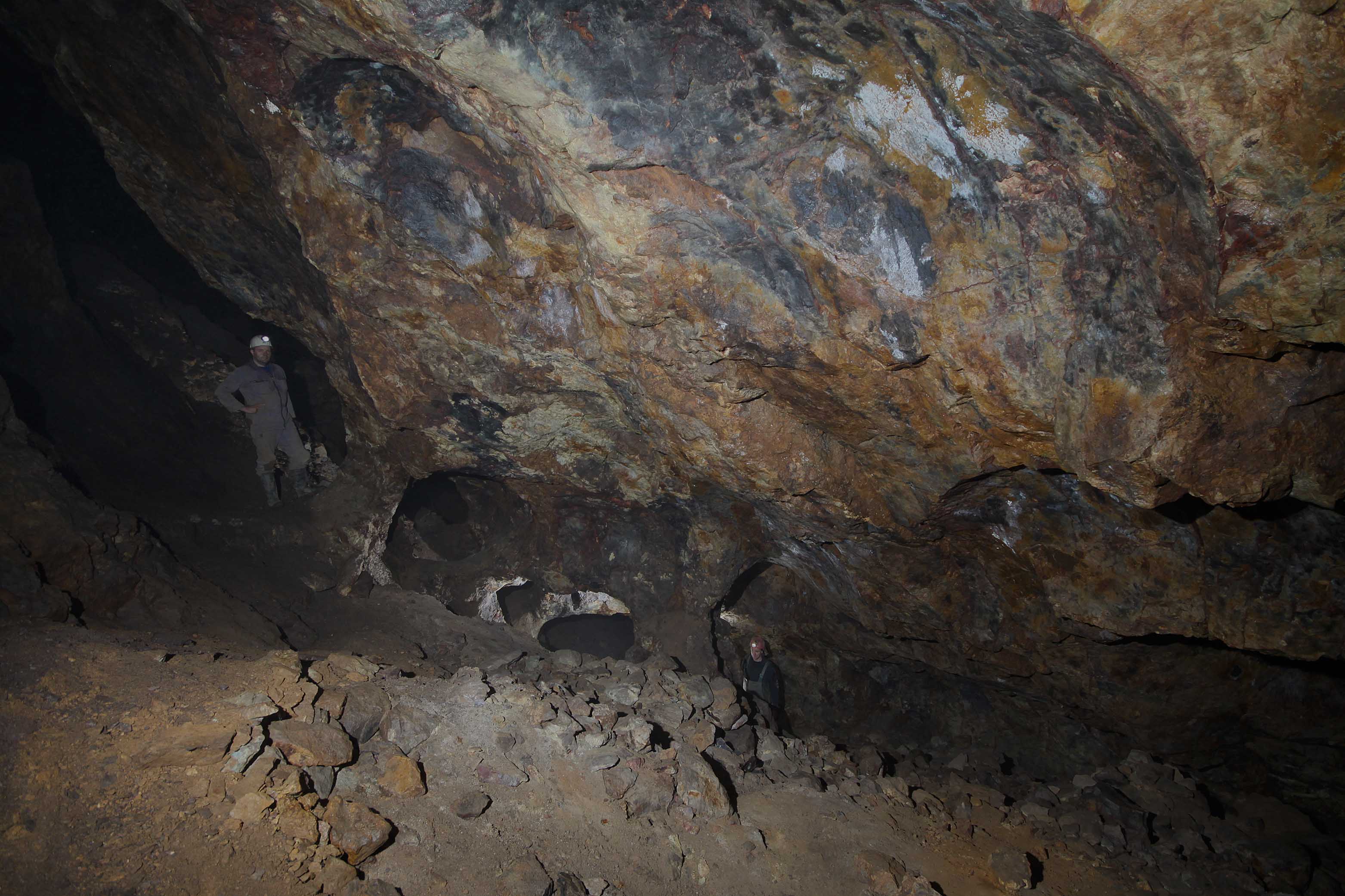 Unmittelbar über dem Kupferschiefer-Flöz liegt eine Schicht Kalkstein, der sogenannte Zechstein (besser: Zechsteinkalk), und je nach Mineralisation sind die Sinter auf den Strecken dann auch schon mal schwarz (Mangan), grün und blau (Kupfer) oder auch violett (Kobalt).