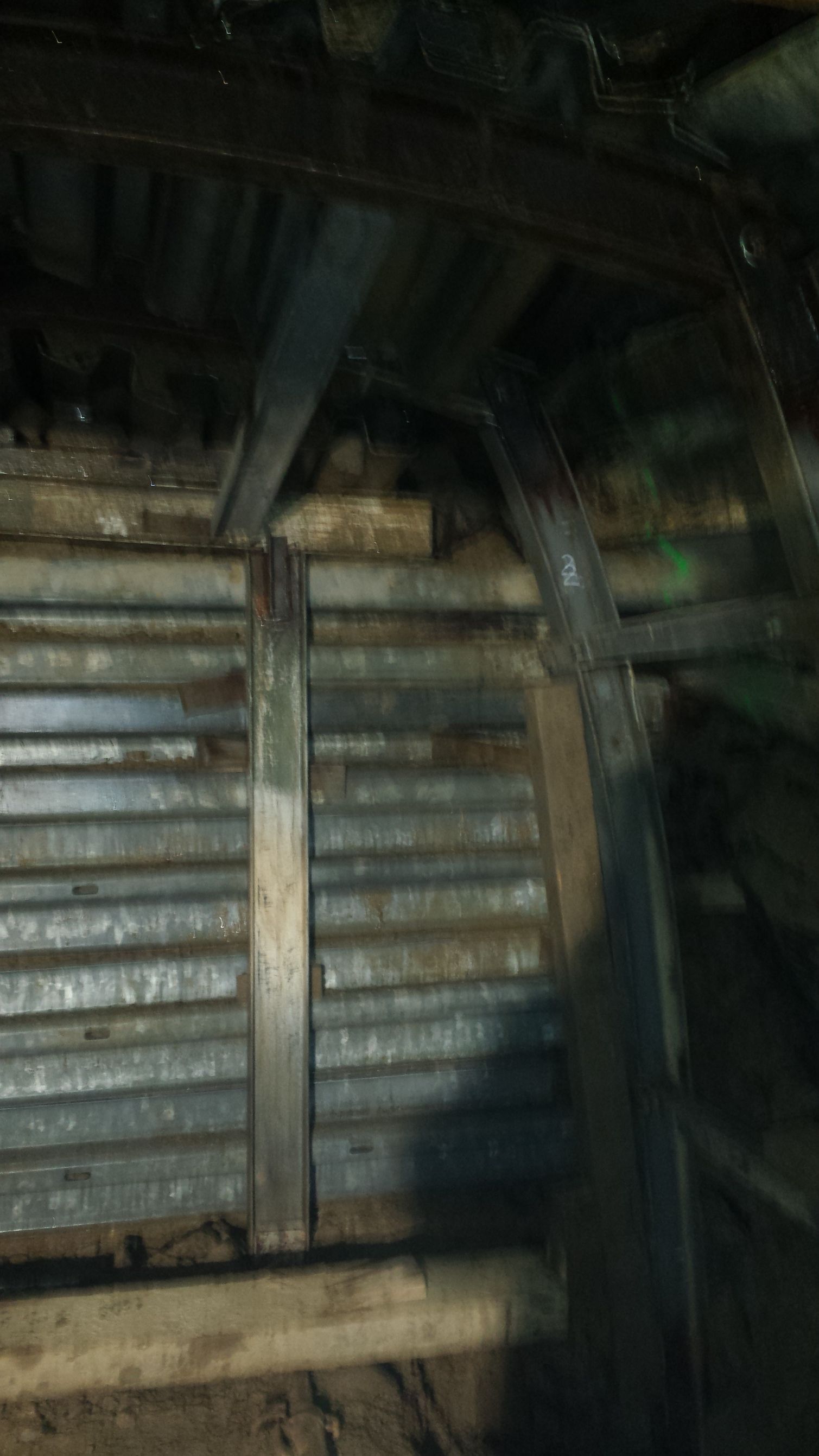 Mittlerweile steht ein weiterer Bau und 2 weitere werden folgen. Danach wird erstmal fotografiert, für die 3D-Dokumentation. Die Reste der Türstöcke werden entfernt und durch weiteren Stahlausbau ersetzt. Sicherheit geht halt vor !