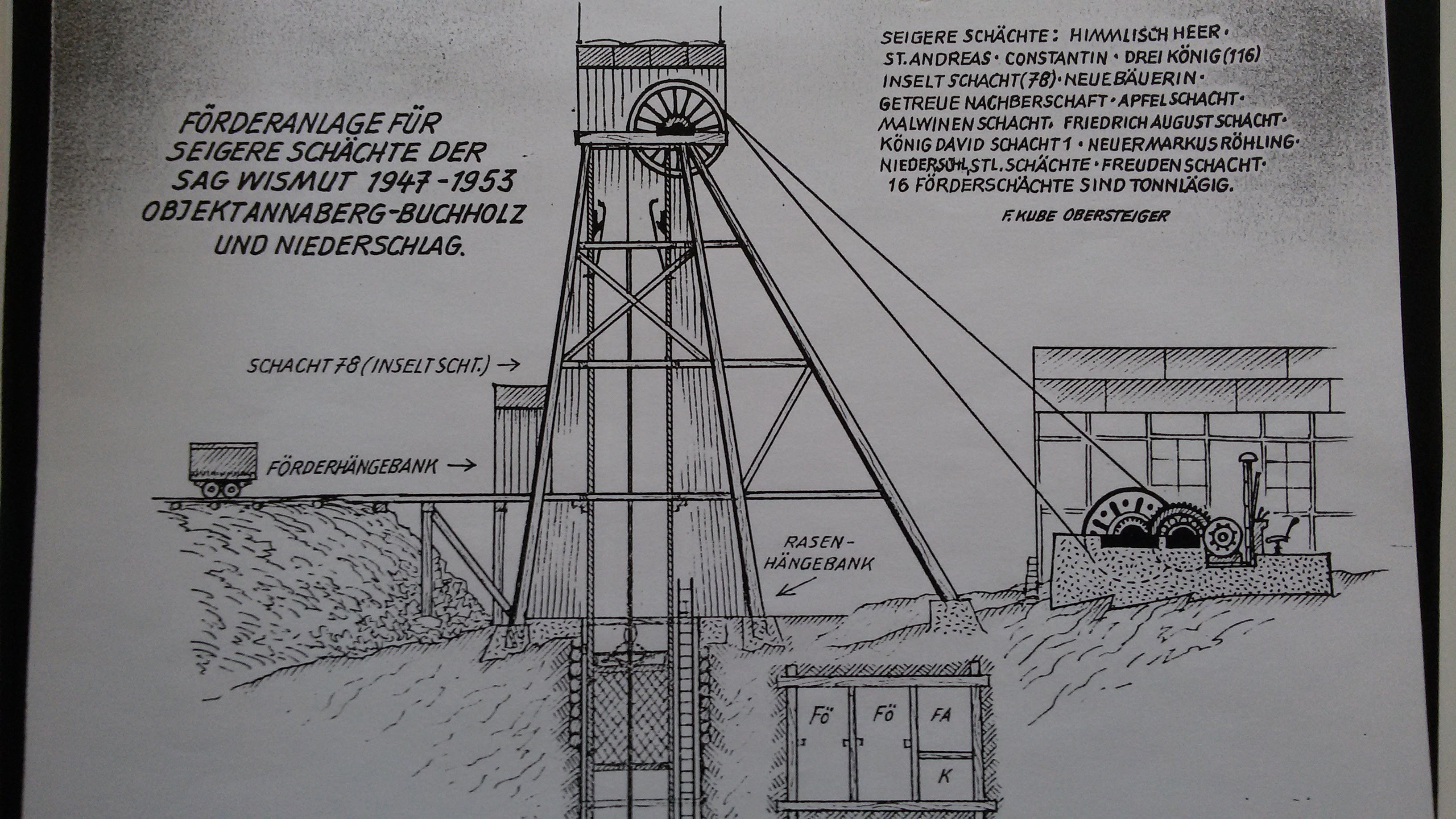 Nun ja, damals ging alles ziemlich schnell und der Kube Felix ist ziemlich herumgekommen und hat überall etwas aufgeschnappt. In Anbetracht der Informationsmenge wird ihm später unterstellt: "sich hier überall bestens auszukennen". Der sicheren Reproduzierbarkeit solcher Gedächtnisinformationen sind nun mal Grenzen gesetzt. Es ist davon auszugehen, dass vieles von ihm erst Jahre oder Jahrzehnte nach seiner Wismutzeit gezeichnet wurde.