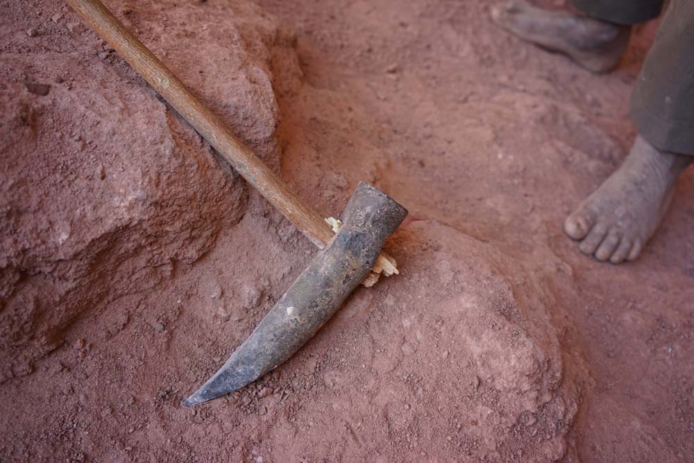 Bis 100 m tiefe Abbaue mit 2,5 kg schwehren Schlägeln / Hacken am Oleanderstiel herausgearbeitet.