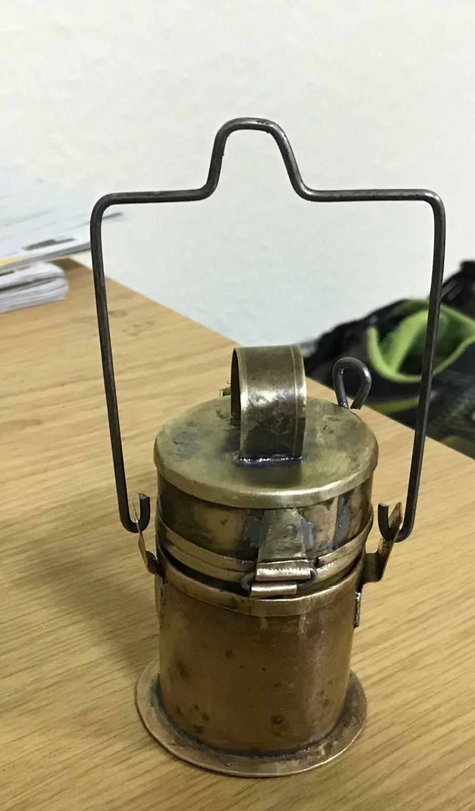 Ich greife das Thema gern nochmal auf. Ich besitze leider kein Original einer dieser Lampen aber einen Nachbau von Andreas Koch. Ich hatte mich mit Wassermann mal über diese Lampen unterhalten und er meinte das Andreas diese mit viel Aufwand herstellt und die früher sicher auch extra Werkzeuge dafür anfertigten. Ich bin aber einer anderen Meinung! Ich habe sehr sehr viele Bilder sowie in letzter Zeit auch originale in der Hand gehabt und stellte fest das nicht alle industriell gefertigt worden sind. Aus diesem Grund versuchte ich mit primitivsten mitteln ein solches Geleucht zu erschaffen. Ich nahm einen Schraubendreher für die Abwicklung einen kleinen Amboss Lötkolben und einen kleinen Hammer. Das Ergebnis seht ihr hier. Vorhin hab ich mich mit einem Bergkamerad unterhalten, dieser erzählte mir das in Barsinghausen diese Lampen in einer Zentralschmiede Laut Akteneintrag gefertigt wurden sowie von einem Klemptner in Obernkirchen. Er sagte dort wurden viele Mansfeldische Bergleute abgeworben.