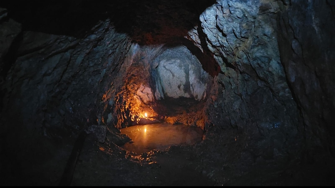 Weihnachten 2020. Etwas Unschlitt erhellt das Stollnort und angefangene Gesenk einer kleinen Fundgrube im mittleren Erzgebirge.