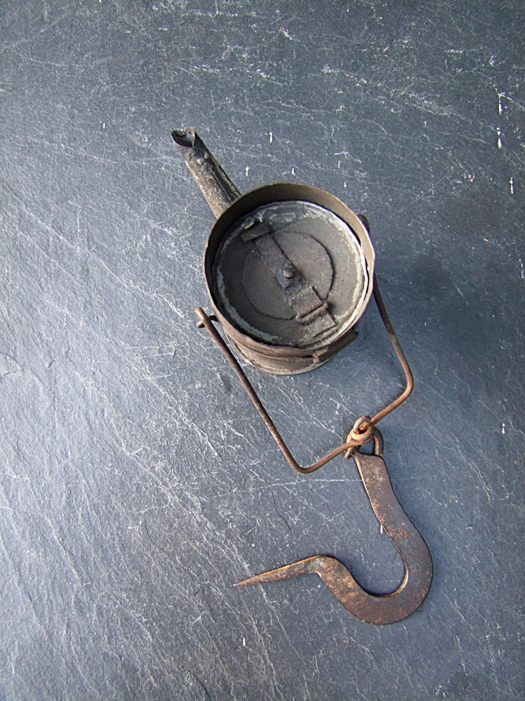 Es handelt sich offenbar um kein bergbauspezifisches Geleucht, sondern die Bergleute haben die im Alltag üblichen Lampen mit untertage genommen, da wohl auch kaum Alternativen zur Verfügung standen.