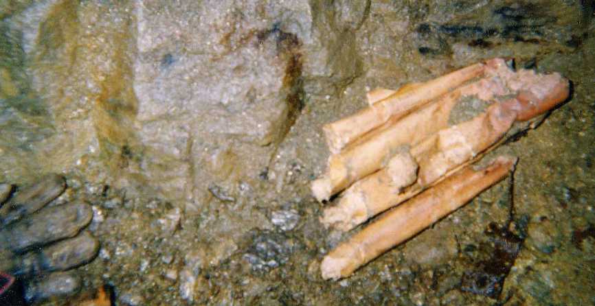 Etwa 1 m über diesem "Tonstück" war im Liegenden des Schachtes ein Bühnenloch, welches säuberlich mit kleinen Holzstücken "verfüllt" wurde.