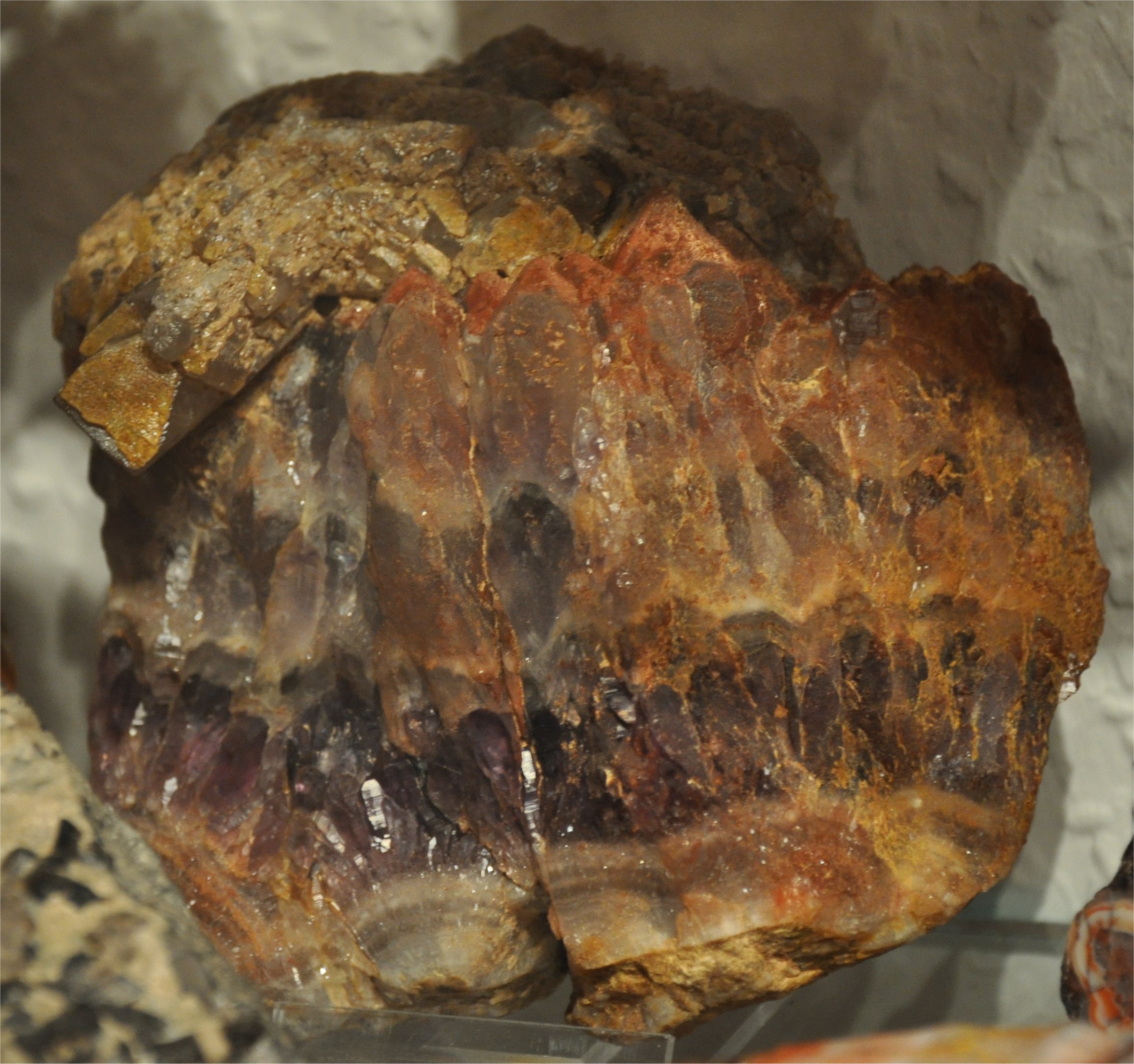 Da hat schon einer gepickert... Druse mit Amethystkristallen und Hämatitüberzug, östliches Freiberger Revier.