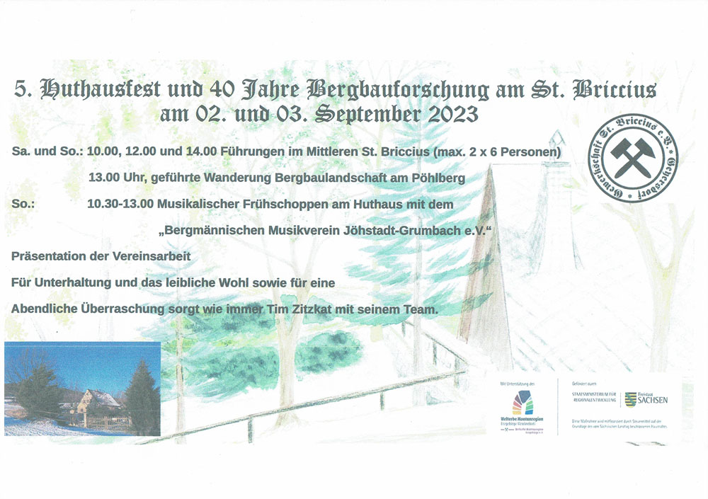 Am kommenden Wochenende den 2.9. und 3.9. feiern wir das 5. Huthausfest und 40 Jahre Bergbauforschung am Osthang des Pöhlberges.