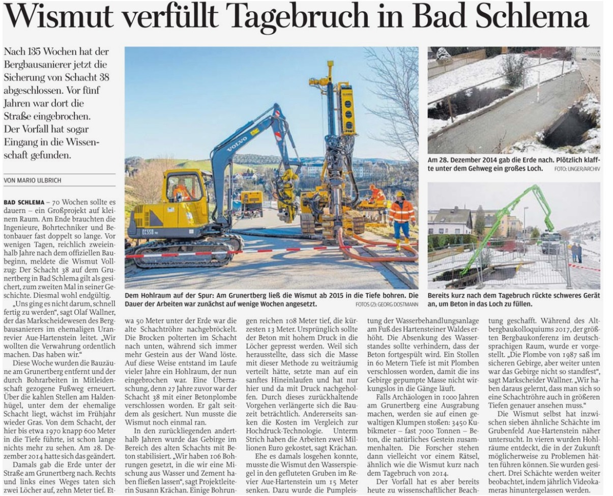 zum Schacht 38 gibt es insofern Neuigkeiten wie Sie nicht in der BILD nachzulesen sind sondern auf der WISMUT Seite unter