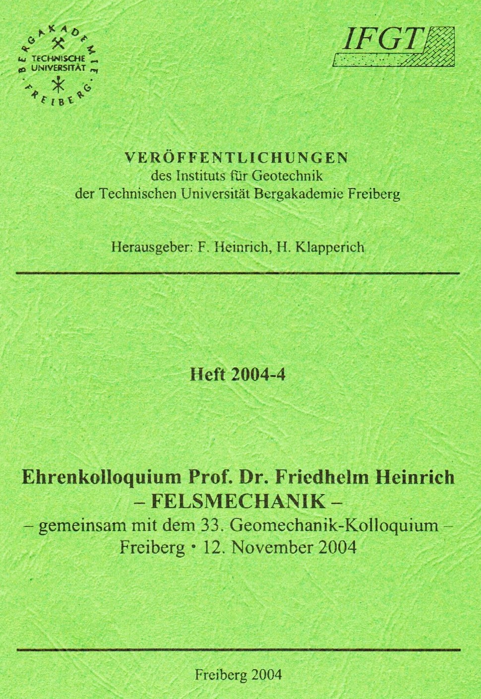 In Freiberg, an der BAF, finden jährlich Kolloquien zum Thema Geotechnik und Geomechanik statt.