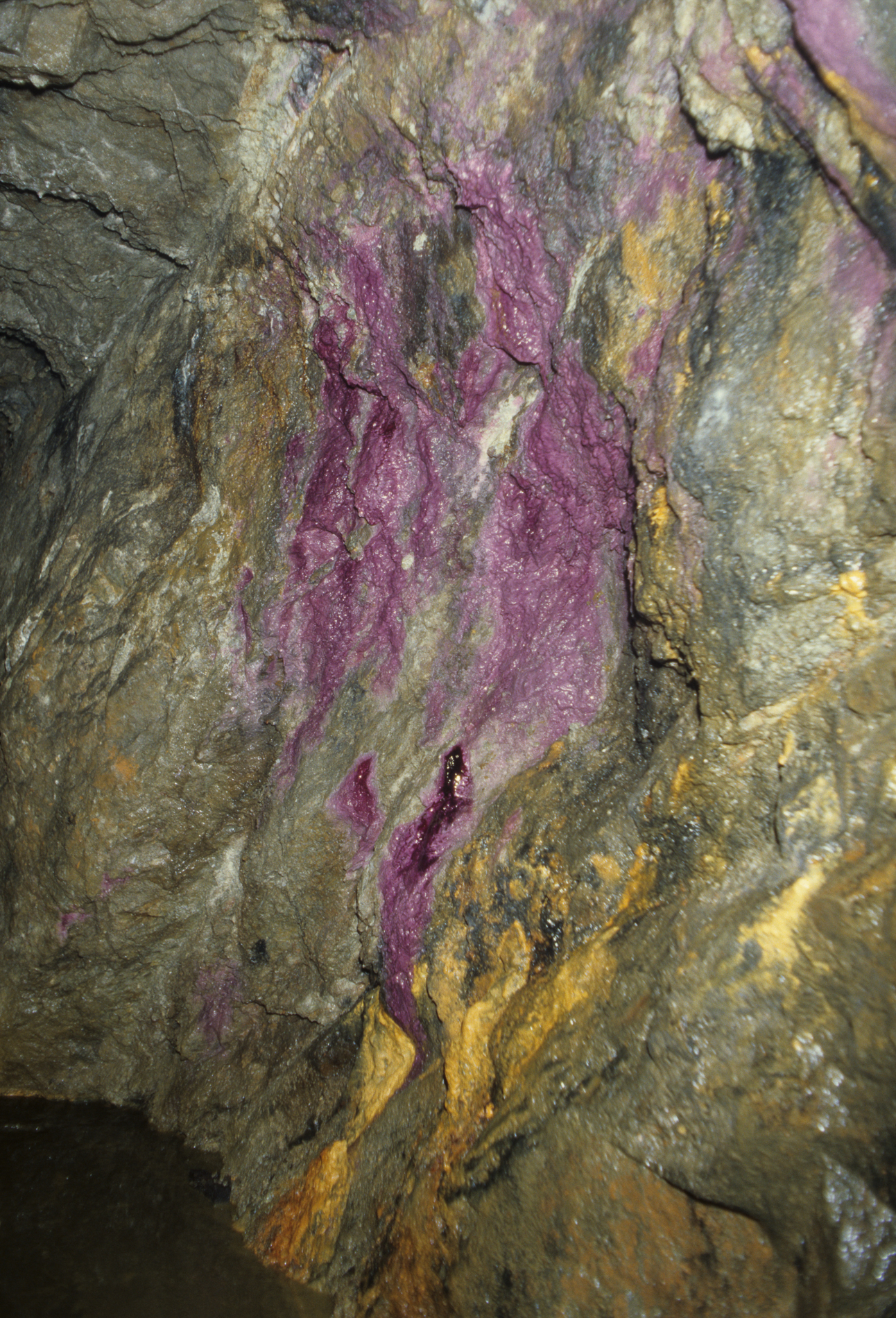 Eisenoxydsinter in einer Strecke im Thüringer Schieferaltbergbau