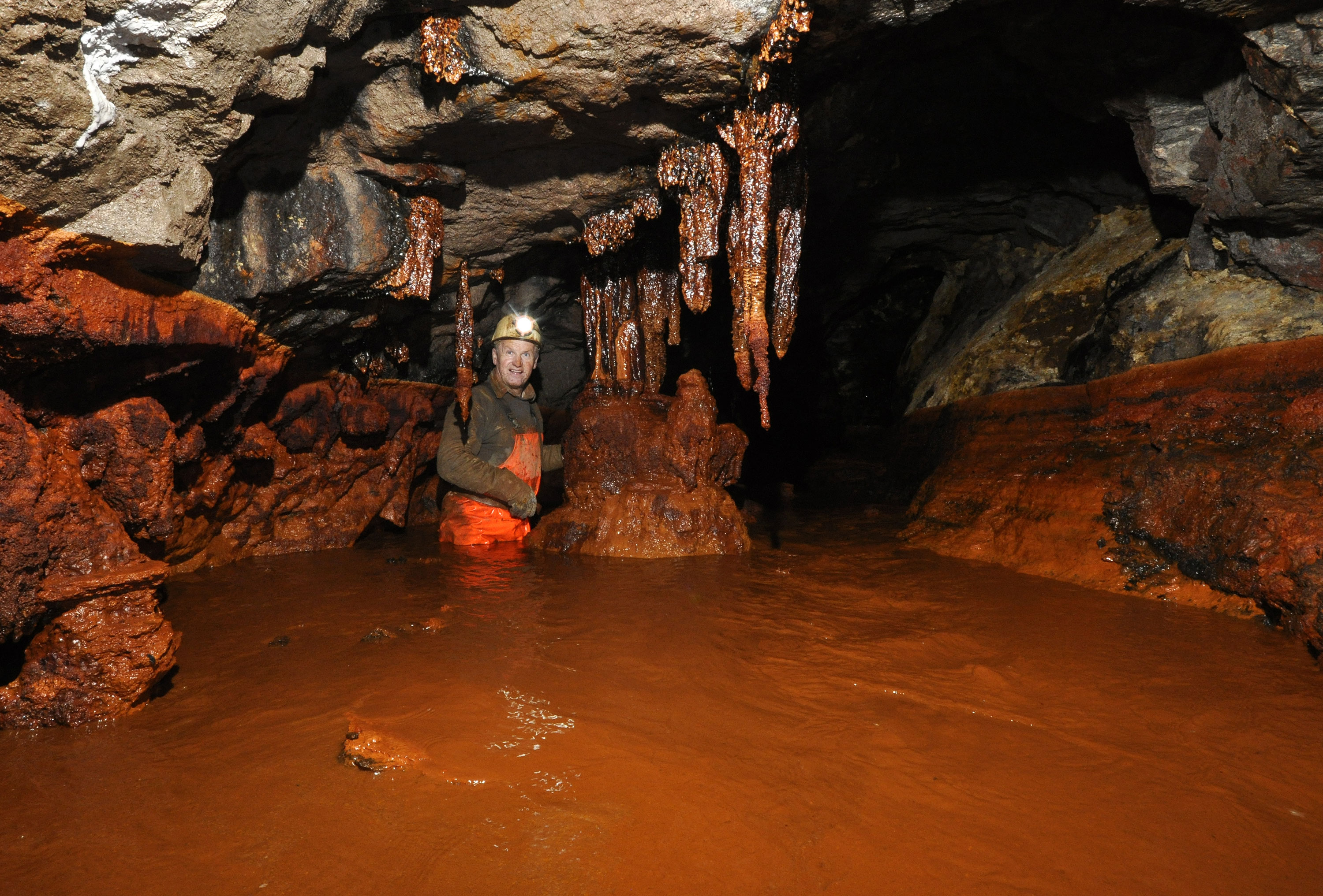 Eisenoxydsinter in einer Strecke im Thüringer Schieferaltbergbau