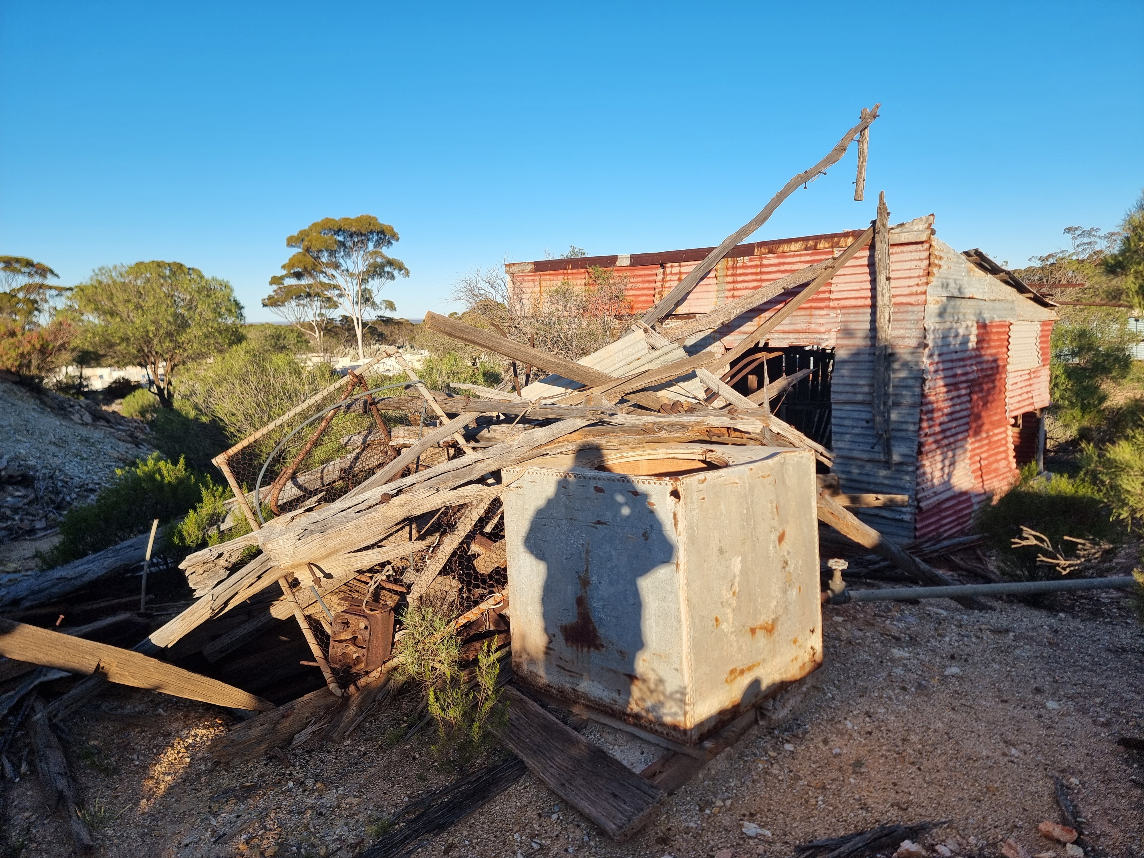 Reste der Seilbahn und der Bergwerkssiedlung.