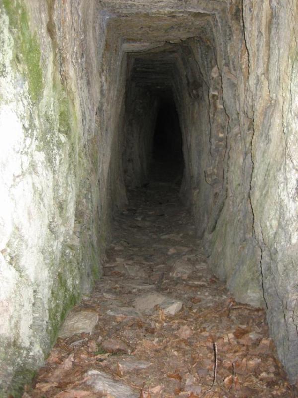 Lage/Revier: Das Revier hier hat soweit ich weiß keinen besonderen Namen, deswegen nennen wir es einfach mal untere Lahn. Damals zuständiges Bergamt: Gute Frage, ich weiß es ehrlich gesagt nicht. Sollte ich es noch rausfinden werde ich es ergänzen. Funktion des Stollens: Versuchsstollen, in dem nach 50 Metern ein kleiner Erzgang angefahren wurde, der aber nur kurz verfolgt und abgebaut wurde. Enstehungszeitraum: 17. bis 18.Jahrhundert, Mitte bis Ende des 19.Jahrhunderts nochmals erfolglose Untersuchungen Allgemeine Beschreibung der Situation: Der etwa 50 Meter lange Stollen ist komplett in Schlägel und Eisen aufgefahren und mündet in einem kleinen Erzgang, der über 5 m Länge ziemlich großräumig verfolgt wurde. Am Ende dieses Raumes befindet sich vermutlich ein kleiner versetzter Schacht, dahinter ist nochmal eine kurze geschossene Strecke, die wohl von den späteren Versuchsarbeiten stammt. Der Abbau ist etwa 3-4 Meter hoch und war im oberen Bereich über eine Bühne erschlossen, die Bühnenlöcher sind noch vorhanden. Darunter befindet sich die Nische, die man von der Form, dem Aussehen und der Sauberkeit, mit der sie geschlagen ist, deutlich von den gewöhnlichen Bühnenlöchern unterscheiden kann.