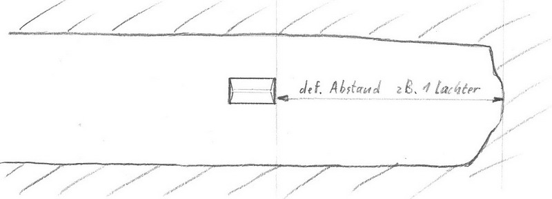 In Stollen, die von Beauftragten der Gewerken /Grubenbesitzer nur in zeitlich großen Abständen besucht wurden (z.B. einmal im Jahr), wurde unter Aufsicht in einer von der Ortsbrust genau festgelegten Entfernung (z.B. 1 Lachter ), eine Markierung in Form einer Trapeznische angefertigt, wobei die dem Ort zugewandte senkrechte Kante der Nische den Bezugspunkt darstellt (s.Zeichnung).