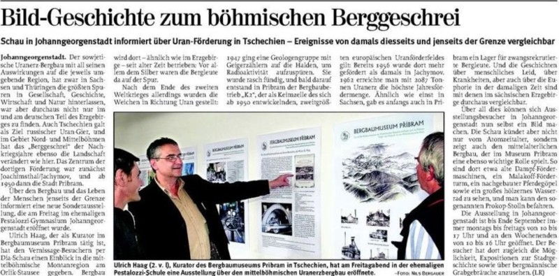 wobei natürlich der Schreiberling, wie nicht anders zu erwarten, Mist geschrieben hat. Es geht in der Ausstellung nicht (!!!) um den Uranbergbau, sondern um das größte Bergbaumuseum der CR in Pribram. Den Uranbergbau hatte ich nur im Vortrag erwähnt. Auf den Tafeln werden die einzelnen Ausstellungsbereiche dargestellt. Weiterhin ist das Wasserrad nicht aus Holz, sondern aus Gusseisen. Na ja das sind nur marginale Unterschiede! Der Schreiberling kam natürlich zu spät und da hat sich sicher der Uranbergbau bei ihm fest gesetzt, oder sein Redakteur fand das Thema gut!
