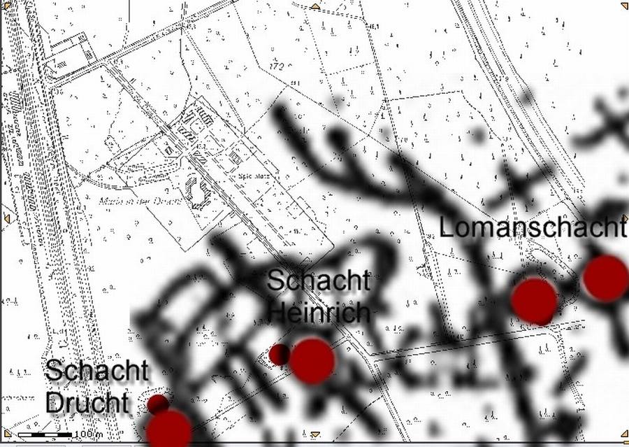 stimme Dir zu! Ich habe diese Schächte auch in den Karten und dabei sind die vielen kleineren Wetter- und Bergeschächte, die das ganze noch ergänzen, noch garnicht berücksichtigt. Scheint also in der Gegend ziemlich löchrig gewesen zu sein :D