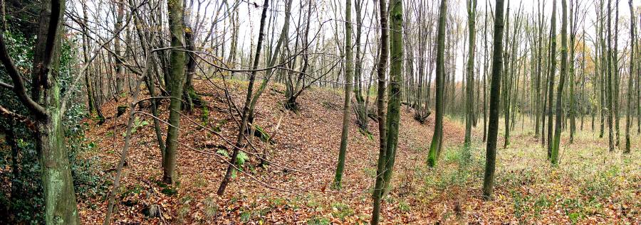 Überall kleinere Kullen und Hügel. Ein Hügel ist mir aufgefallen, dessen komplette Flanke abgerutscht ist.