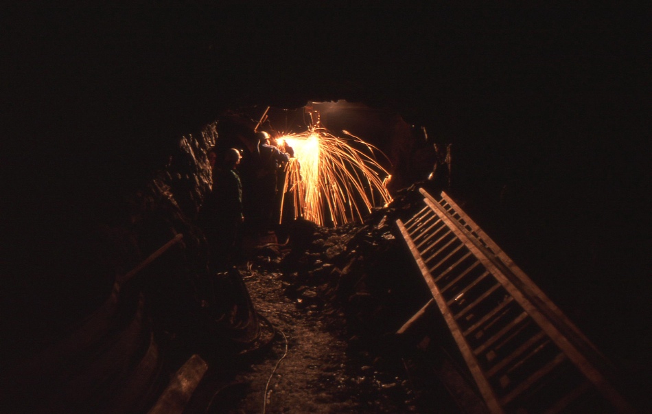Die Gezähe-Palette des Bergmanns hat sich in der Neuzeit ja auch beachtlich erweitert, zum Beispiel durch Schweißgerät und Schneidbrenner. Einsatz eines Schneidbrenners zum ablängen von Profilen im Besucherbergwerk Wismutstolln in Biensdorf.