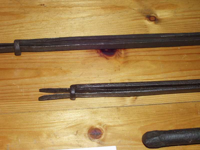 Bergeisen mit Makroaufnahme von einer Einlagerung von Bleiglanz, mit diesem Eisen ist also nachweislich Bleiglanz abgebaut worden.