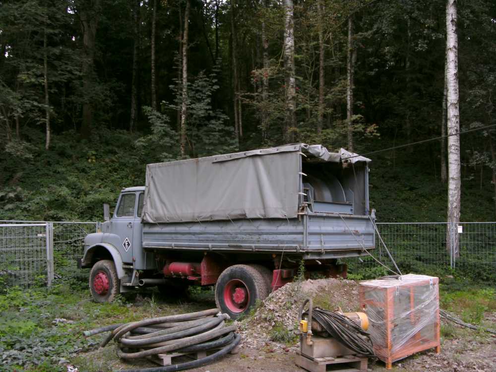 Mobile Fördermaschine bei den Sanierungsmaßnahmen am 1. Lichtloch des Rothschönberger Stolln