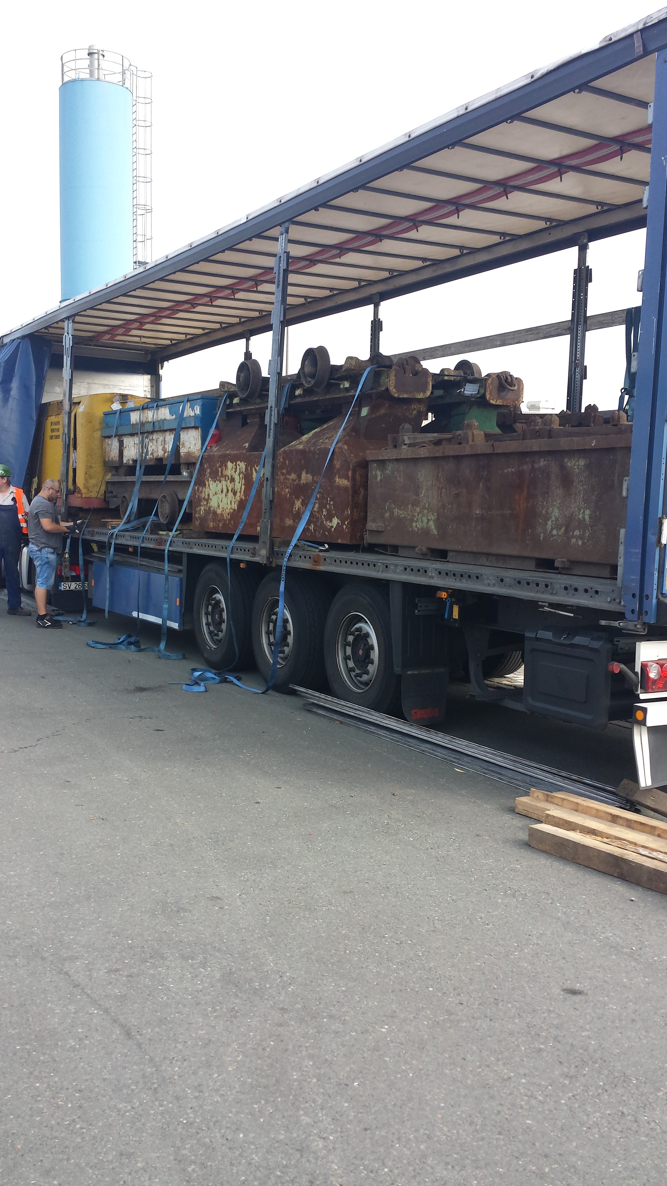 Dank auch an die Firma Becker Mining Systems ( Marl ) für die Überlassung ( kostenlos ), von einen Stapler und Fahrer, denn ohne wäre es nicht möglich gewesen. Die beiden LKW wurden über Spenden finanziert.