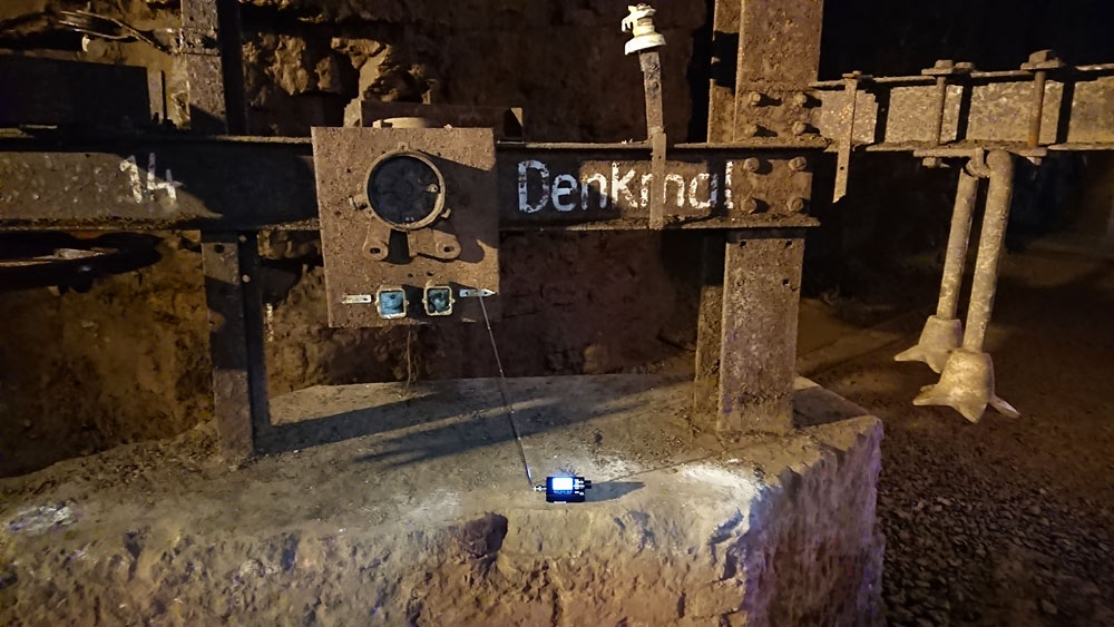 Ja und was soll ich sagen - Während der ganzen Führung habe ich mein Signal von Übertage gehört, manchmal laut und überdeutlich, in etwas weiterer Entfernung (nach der Fahrt mit der Grubenbahn) etwas leiser, aber immernoch so gut, dass eine Verbindung in SSB (Sprechfunk) problemlos möglich sein müsste.