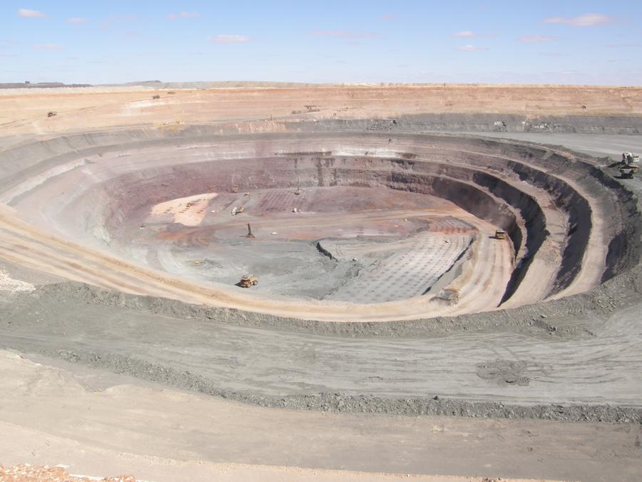 *der Pit Ende 2008 (Enddimensionen werden 1,5 x 1 km und 500 m Teufe fuer etwa 75 Mio t Erz, moeglicherweise wird es noch Tiefbau fuer eine Resource von weiteren 100 bis 150 Mio t geben))
