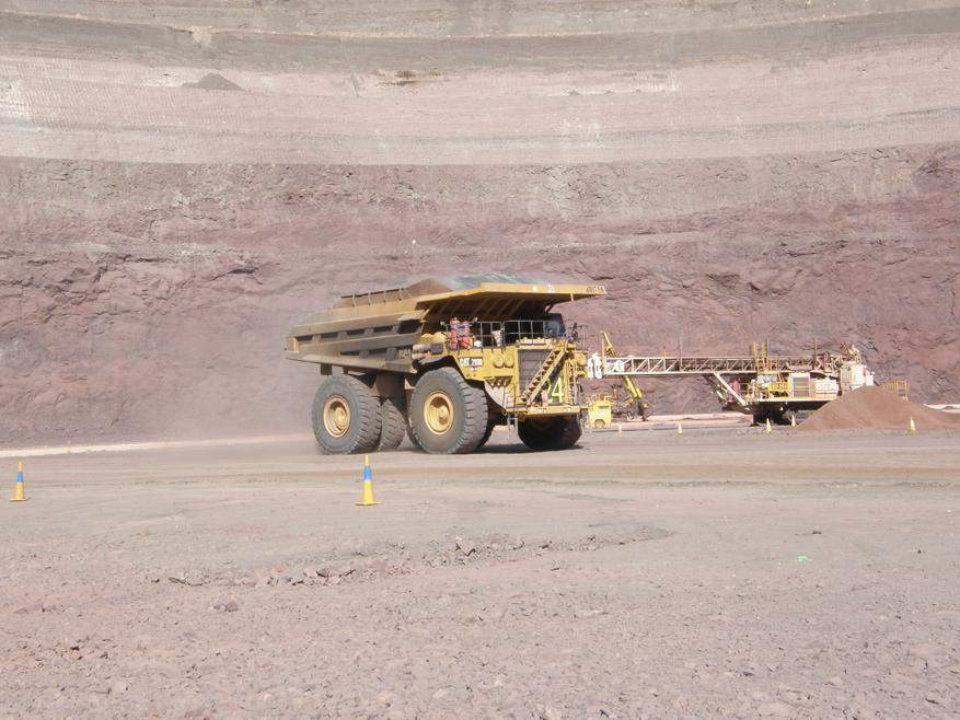 *Brecheranlage unter dem ROM-Pad (ROM - Run of Mine; Erzmischplatz - ausgehalten werden 4 Sorten: Chalcosin-Erz, Bornit-Chalcopyrit-Erz, Chalcopyrit-Pyrit Erz sowie nur-Gold)
