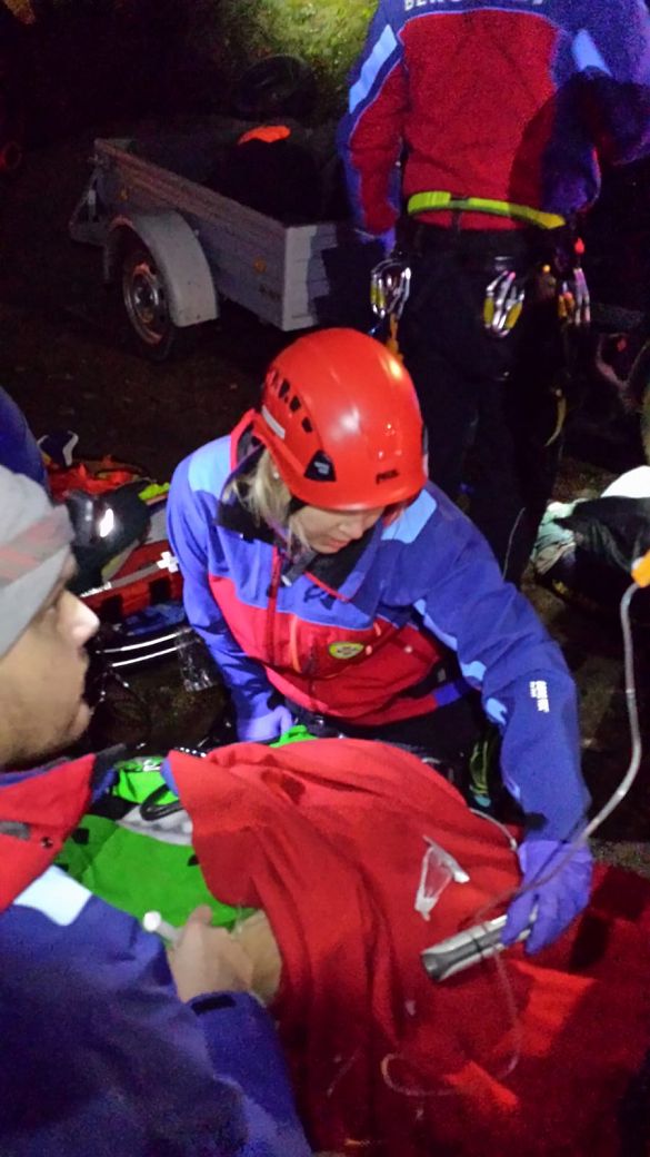 Es ging Hand in Hand und dieser Verletzte wurde über einen Hang geborgen.