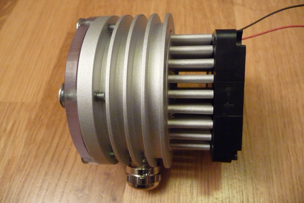 Da die Helmlampe bei einem Strom von 3000mA bzw. einer Leistung von 60-70W passiv nicht zu kühlen ist und extrem heiß wird, wird die Lampe „nur“ bei max. 2050mA betrieben.