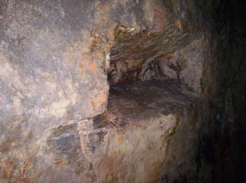 Die erste Nische davon (vom mundloch aus gesehen) hat eine Inschrift auf der Nischensohle, die wir bisher aber noch nicht sicher deuten konnten - wahrscheinlich eine jahreszahl.