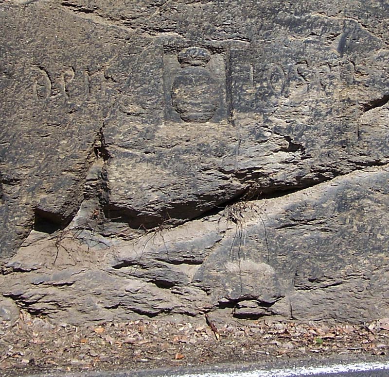 , glaube aber, daß sie mehr mit Straßenbau als mit Bergbau zu tun hat. Die Straße ist ziemlich aus dem Stein gehauen - vielleicht wurde zum Gedenken der (teuren) Baumaßnahme die Inschrift gesetzt.
