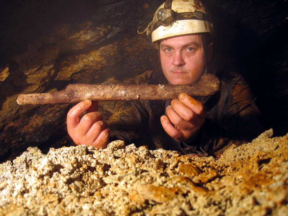Vor kurzem fanden wir bei einer Untertägigen Exkursion im Altbergbau einen seltsamen Holzstiel. In unmittelbarer Nähe wurde noch ein zweites Exemplar davon entdeckt. Kann es sich dabei tatsächlich um einen Keilhauenstiel handeln...?