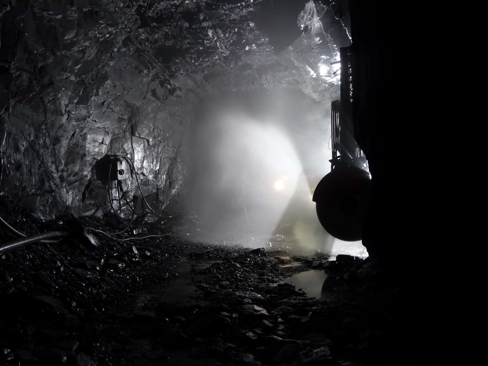untertägige Dachschiefergewinnung in Deutschland. Auf dem Bild zu sehen ist eine Sägemaschine mit der der Schiefer senkrecht zur Schieferung eingesägt wird und später dann blockweise abgespalten werden kann.